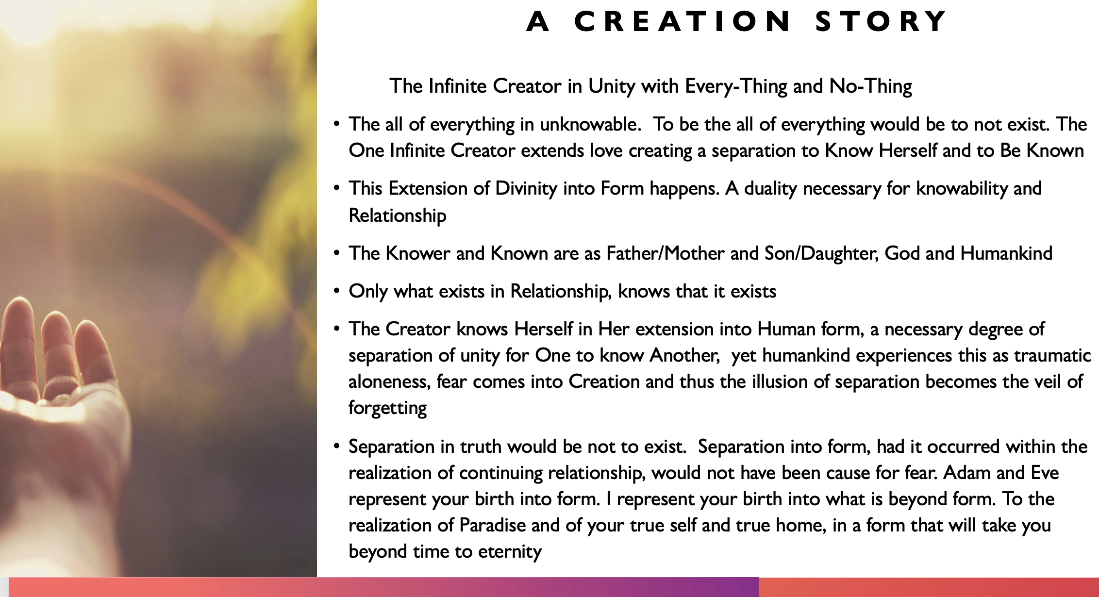 One Infinite Creator extends love creating a separation to Know Herself and to Be Known