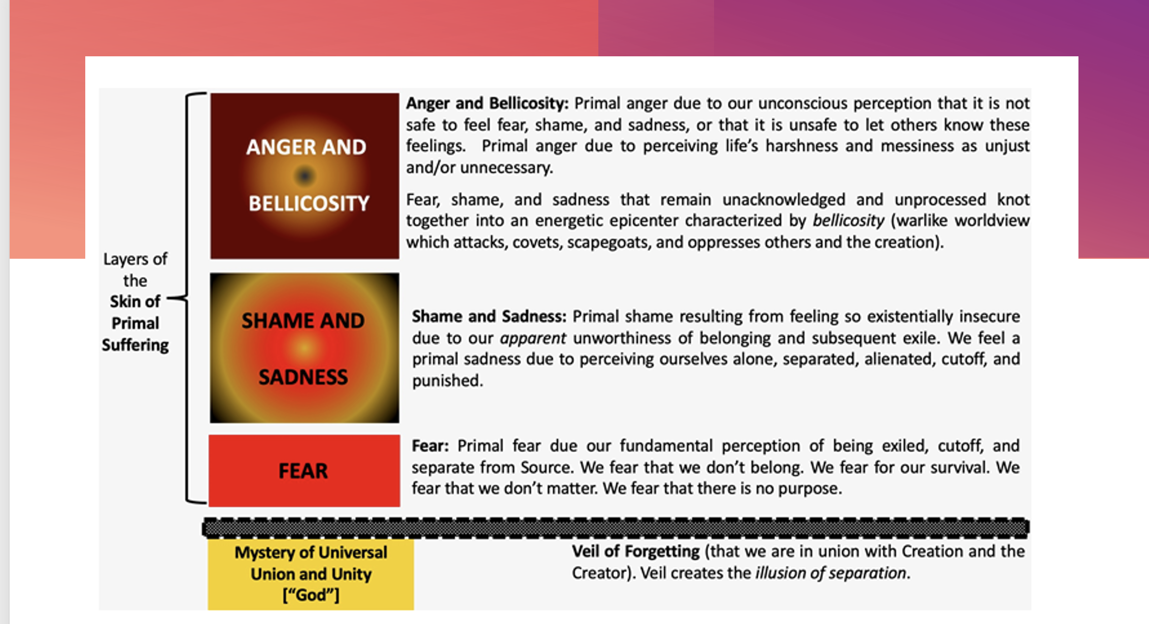 separation of unity for One to know Another, yet humankind experiences this as traumatic aloneness, fear comes into Creation and thus the illusion of separation becomes the veil of forgetting